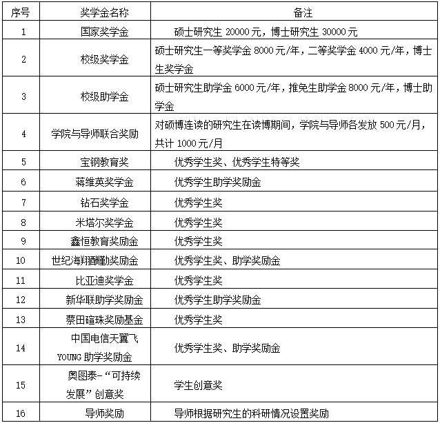 集团研究生奖助学金包括:研究生国家奖学金、研究生学业奖学金、拔尖博士生董事长奖学金、研究生助学金、校级奖励金等。研究生可同时申报研究生学业奖学金、研究生国家奖学金、拔尖博士生董事长奖学金和各项校级奖励金,但不能同时获得研究生国家奖学金和各项校级奖励金;