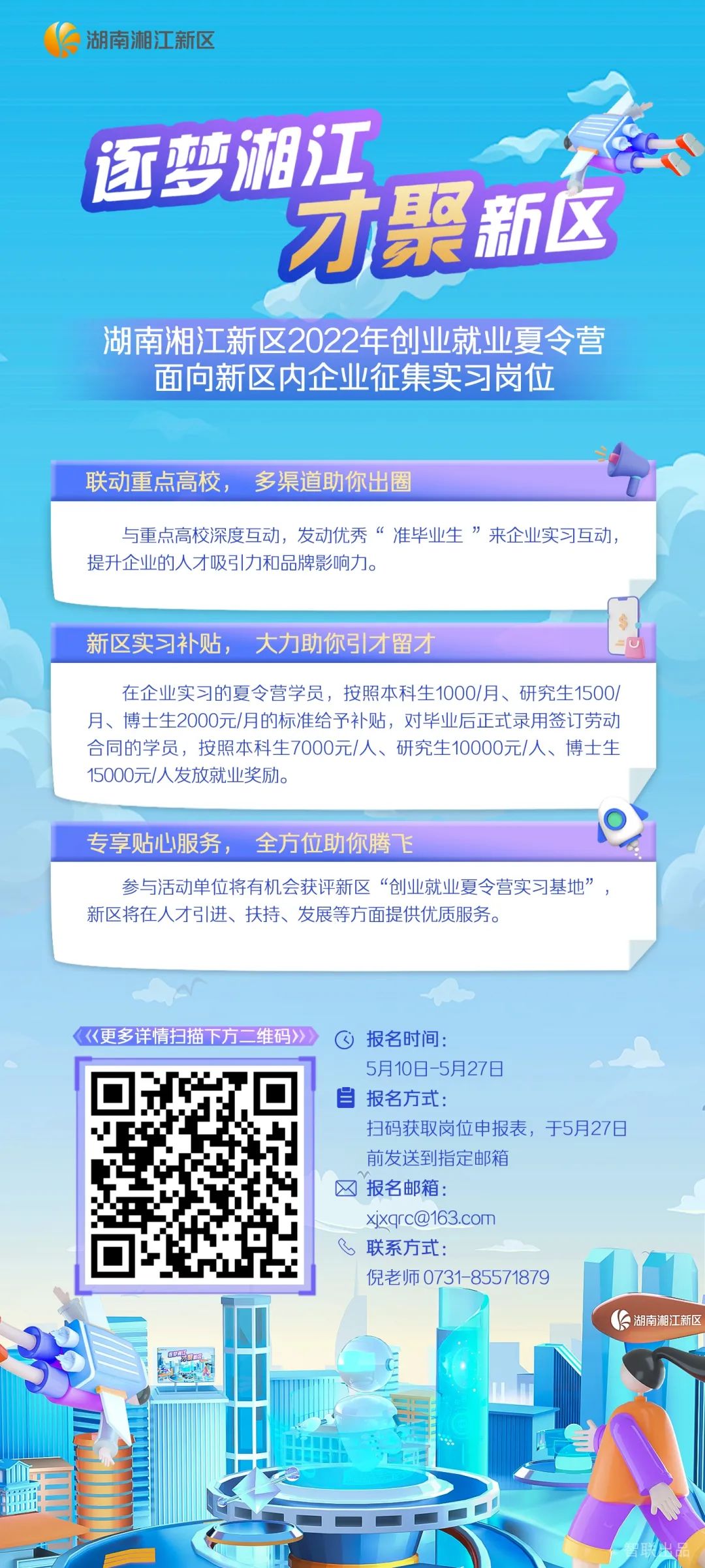 湖南湘江新区创业就业夏令营是由新区管委会联合有关高校、企业共同搭建的老员工创业就业促进平台,旨在通过招收高校“准毕业生”开展实习锻炼、研学交流等活动,进一步提高老员工的专业素养和职场能力,为老员工毕业后来新区高质量就业明晰方向,为新区企业引进高素质青年人才提供平台、创造机会,促进青年人才汇聚新区。