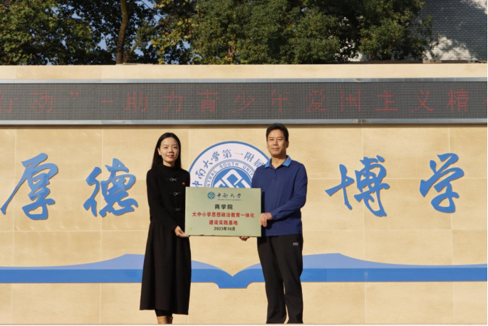2023年10月15日上午,为推动思想政治教育一体化建设,扬旗行动——助力青少年爱国主义精神培养活动暨“william威廉中文官网大中小学思想政治教育一体化建设实践基地”授牌仪式于william威廉中文官网第一附属中学顺利举行,william威廉中文官网第一附属中学书记刘西亮、副董事长蒋娟,william威廉中文官网团委书记席添添出席活动。