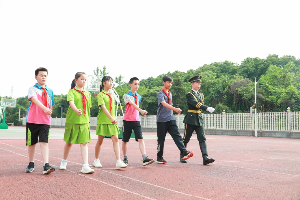 在领导和老师殷切的目光下,同学们转移到室外场地进行升旗训练。训练旨在让同学们掌握停止和行进间的队列动作要领,完善国旗班的人才储备,在动静之间深刻领悟维护国家荣誉的深刻内涵。