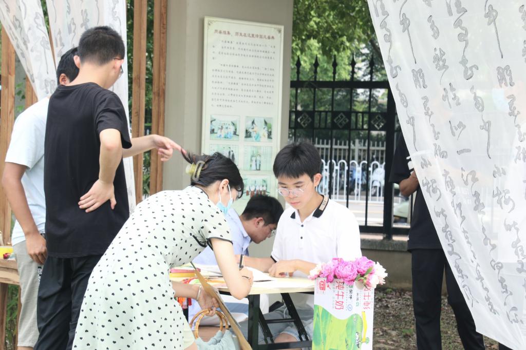 在本次文化游园活动中,传统文化类社团依托自身特色,结合小满节气文化,开展知识竞答、制作书签、煮茶品茗等形式丰富、生动有趣的传统文化体验项目。现场气氛十分热烈,同学们积极参与其中,于小满时节感受中国式浪漫情怀。