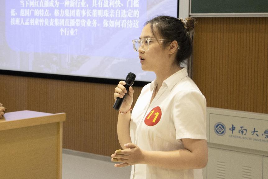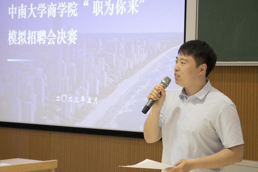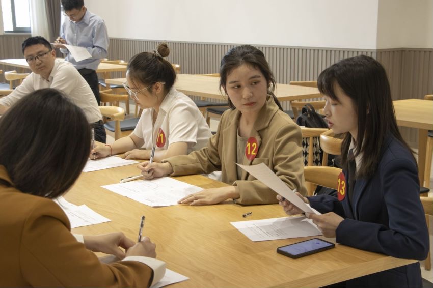 本次决赛分为四个环节:无领导小组讨论、自我介绍、压力面试和就业主题即兴演讲。这些环节旨在全方位了解员工求职经历和就业观,考察员工的沟通能力、压力应对能力、语言表达能力和逻辑思考能力,从而更好地模拟真实的招聘场景。在即兴演讲环节,李春雪同学围绕中南精神和在职场展现中南风采进行阐述,林倩茹同学以“continue·catch·culture”(持续深耕·抓住机遇·关注人文)来回答面对chatGPT的挑战如何结合专业来保持核心竞争力。