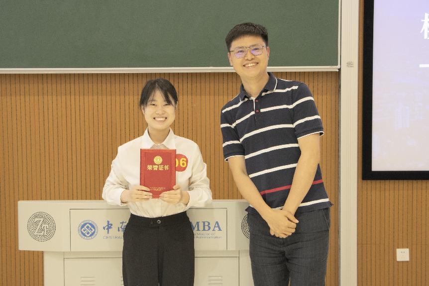 最后公布决赛结果,李春雪荣获一等奖,林倩茹、印甜甜荣获二等奖,郭瑞捷、王亚宏、周轶帆荣获三等奖。中信建投证券股份有限公司湖南分公司唐炜、湖南中伟智能制造有限公司高级人资经理陈武、盈峰环境科技集团股份有限公司袁聪、盐津铺子食品股份有限公司李思情、招商银行长沙分行向亦凡分别为荣获一等奖、二等奖、三等奖的选手颁发荣誉证书。