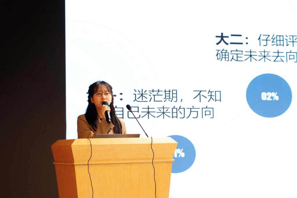 大会第一环节,由全网30万+粉丝,知乎金融领域top10的优秀博主、优秀员工郭长鸣学长进行大金融领域的职业规划分享。他从商科领域就业方向和其发展前景展开介绍,并认为“选择大于努力”,带有目标的努力才是正确的,希望同学们能够早日做好规划并为之付出努力。