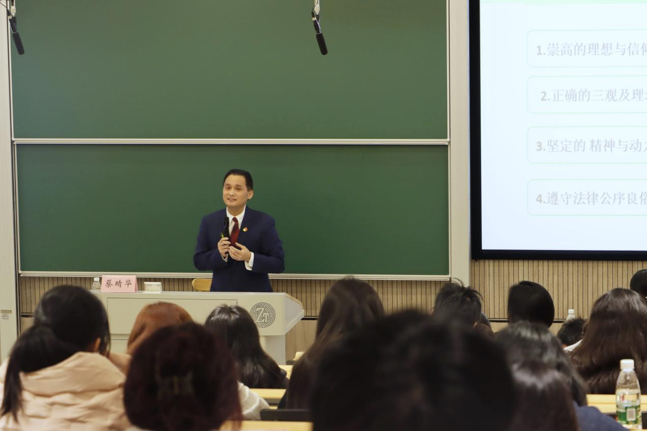 二是“诸事洞明,学有专工”。蔡晴华讲师教导同学们日后要成为遵纪守法、廉洁自律、知晓风险、恪守底线的模范践行者,也要在各自领域中学有所长、学有所精,明确时代定位,承担社会责任。
