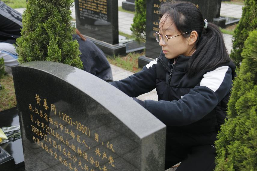最后,社会实践部组织志愿者们清扫陵园,为烈士墓碑擦拭尘土。全体成员都专注地清理着身前那一块承载着英雄往事的墓碑,双眼中盛满对英烈们的深切追思。