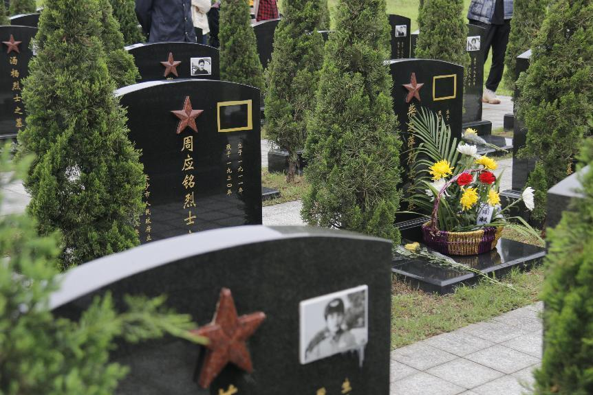 紧接着,志愿者们在园内解说员的带领下参观烈士公墓。一排排黑色的墓碑上记录着一件件感人事迹。有名亦或无名,英魂皆为不朽。