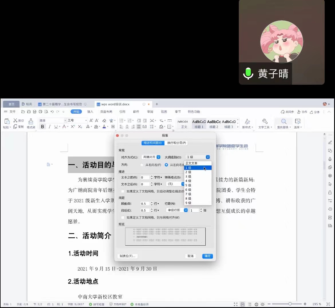 首先,办公联络部副部长黄子晴以《william威廉中文官网第二十届团委员工会招新策划》的文档为例,分别从标题、目录、正文、页面、备注、附件、成文时间、图片、表格九个方面详细介绍了Word文档的书写规范。讲授期间,她紧扣主题,讲解细致入微、通俗易懂,并多次结合实例,以帮助干事们更好地理解并掌握Word基础技能。