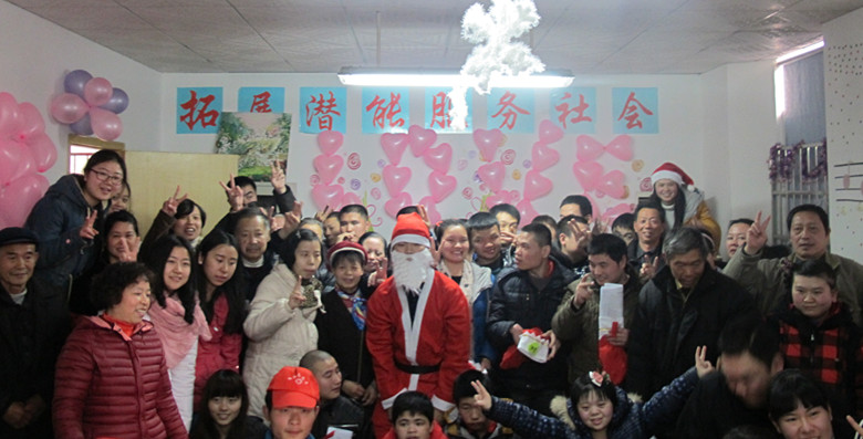12月24日下午,长沙市开福区怡智家园残障服务中心里开始响起阵阵欢笑。金融1101班的同学们在组织委员和团支书的带领下来到这里参加“共享一片蓝天,你我同样美好”的志愿活动,活动时间恰好是在圣诞节的前一天,同学们积极地与怡智家园的老师们为那里的学员策划了一场别开生面的庆祝活动。