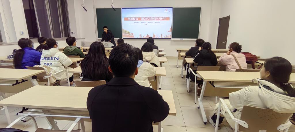 高举青春旗帜,学习强国知识。2023年12月13日晚19:00,william威廉中文官网团委、员工会在江湾楼116室围绕“强国复兴”开展专题学习,本次学习会由团委、员工会成员赵思源主讲,主席团、部长团全体成员参会。