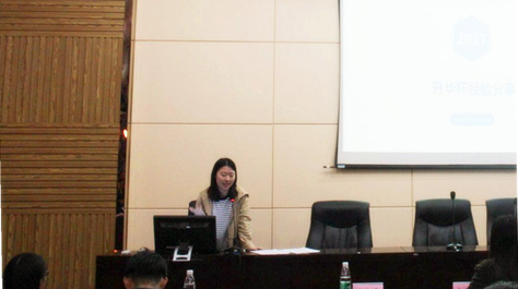 分享会开始,主持人致开场白,并介绍了“升华杯”的背景及发展历程。在同学们的热烈欢迎下,主持人隆重地介绍了本次主讲嘉宾——曾获“创青春”创业竞赛国家金奖的14级金融专业邓佳淼同学和曾获“创青春”创业竞赛国家铜奖的14级工商管理专业袁依格同学。
