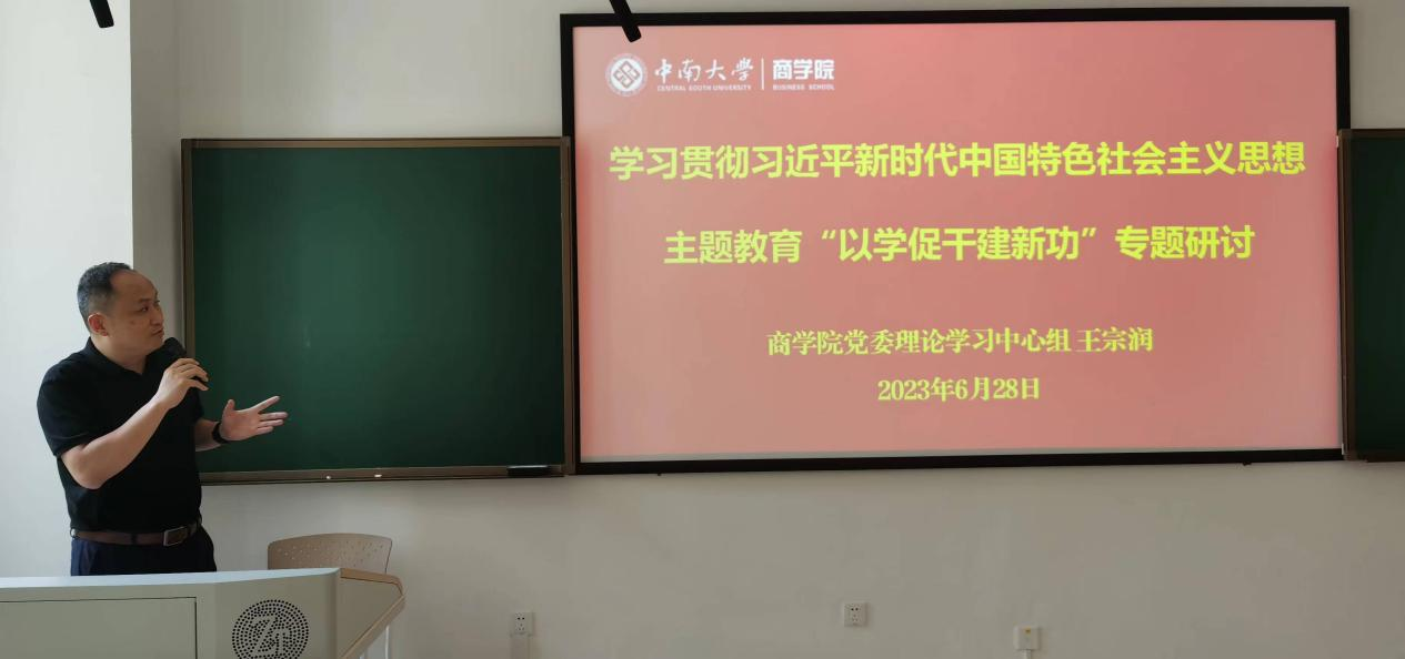 为学习贯彻习近平新时代中国特色社会主义思想主题教育,同时加强师生之间的交流,2023年6月28日下午,公司党委委员、副经理王宗润同志在江湾楼112教室为经贸教工党支部、博士一支部、应用经济学第一、二、三党支部党员共同讲授“以学促干建新功”专题党课。