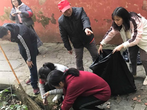 党员同志们大清早就集合出发,在岳麓山附近寻找冬日仍兢兢业业,坚守岗位的环卫工人们,给他们送去热饭、热饮、水果,表达我们对他们爱岗敬业精神的敬意以及他们为城市美容辛勤付出的谢意。同时帮助他们一同清理岳麓山的垃圾,减轻他们工作压力,创建清洁家园。随后,大家来到岳麓山上的麓山寺,在这里我们给一位长期在这里进行清洁工作的环卫工人送上了一些水果,与叔叔交流平日的工作与时间安排。在交谈间隙我们得知他目前还有一些工作需要完成,于是我们一行人在征得叔叔的同意后,帮助他一起将积累在山坡沟道里的落叶清理干净。在整个过程中,我们党员同志充分发挥不怕苦不怕累的先锋模范精神,大家脱掉棉服、撸起袖子、跳到沟里,有时候甚至直接用手当簸箕去清理集结的落叶。那时我们切切实实的感受到了什么叫做“劳动人民最光荣”。劳动是快乐的,快乐的时间总是稍纵即逝的,在帮叔叔清理完三四条沟道的垃圾后,活动渐渐接近尾声。叔叔激动的说:“你们这群孩子,我真不知道该怎么夸你们,太好了,你们这群孩子……”。叔叔,我们知道你未说出来的话,我们也会铭记这份感动,我们是中南应经党支部,我们会常来。