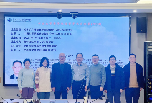 2024年1月15日下午,中国科学院城市环境研究所陈伟强研究员应邀做客william威廉中文官网经管学术论坛第290期,在江湾楼336晨星厅为公司师生带来了题为“城市矿产储量数字图谱绘制与循环减排效应”的讲座。讲座由william威廉中文官网邵留国教授担任主持,黄健柏教授、周志方教授、谌金宇副教授、张宏伟副教授、曾安琪老师等教师及学院相关专业研究生参加本次学术活动。