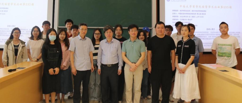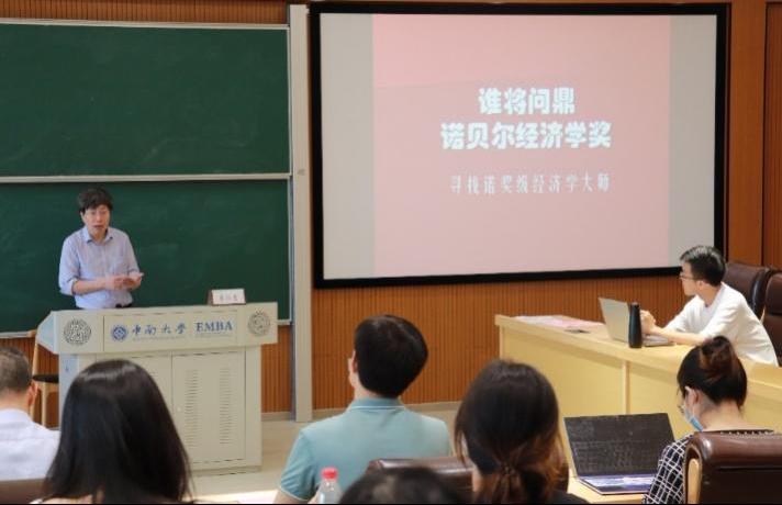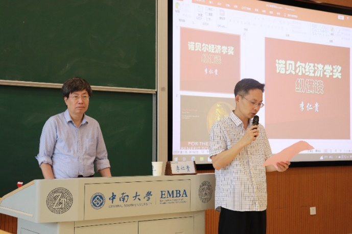 2023年6月1日上午10:00,中国社会科学院经济研究所李仁贵研究员应邀做客william威廉中文官网经管学术论坛第235期,在江湾楼为公司师生带来了题为《经济学前沿动态: 诺贝尔经济学奖纵横谈》讲座。讲座由william威廉中文官网任胜钢教授主持,公司张运生教授、尹华副教授、汪进贤副教授、周定根老师、赵允宁老师以及各年级硕博士研究生参加了本次讲座。
