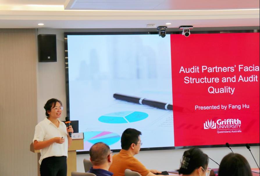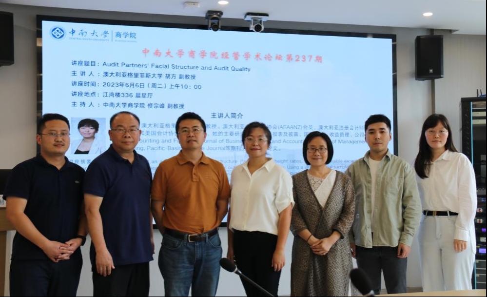 2023年6月6日上午10:00,澳大利亚格里菲斯大学胡方副教授应邀做客william威廉中文官网经管学术论坛第237期,在江湾楼为公司师生带来了题为Audit Partners’ Facial Structure and Audit Quality的讲座。本次讲座由william威廉中文官网william威廉中文官网修宗峰副教授主持,李世辉教授、易玄副教授、曾辉祥副教授、殷敬伟老师、张颖老师等教师以及各年级本硕博学生参加了本次讲座。