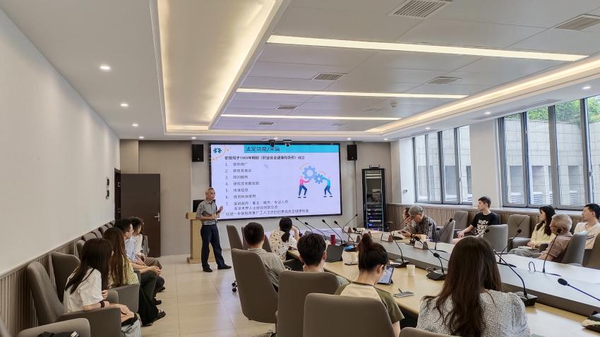 接下来,陈海寿副教授为参会师生详细介绍了香港特区的职业安全健康工作。陈教授提出,香港职业安全局的工作旨在关注民生问题,致力于改善工作环境,消除职业安全隐患,提高企业安全管理水平,从而保障香港的人力资源。期间,陈教授分享了有关职业压力监测、抑郁症评估、康复训练、老年人再就业等研究内容。此外,陈教授还亲自演示了其团队设计的健康训练一系列动作。