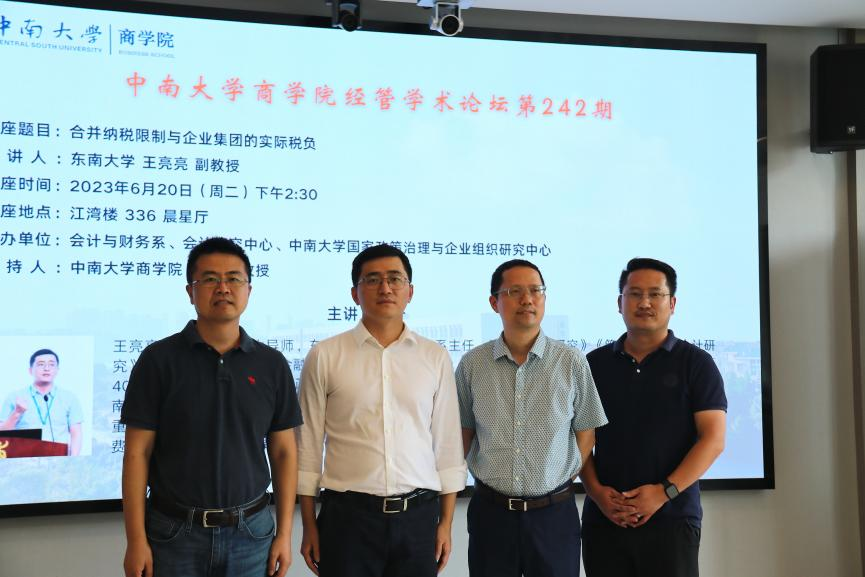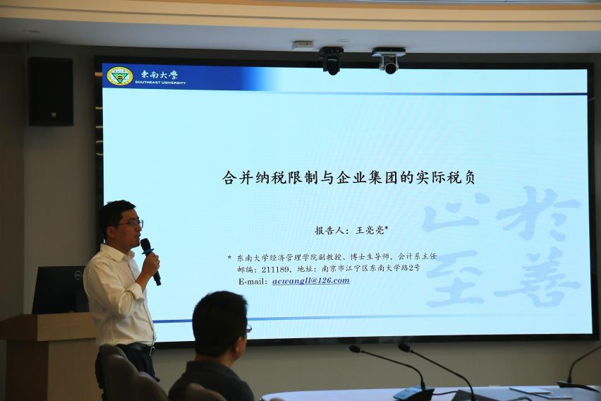 2023年6月20日下午,东南大学王亮亮副教授应邀做客william威廉中文官网经管学术论坛第241期,在江湾楼为公司师生带来题为《合并纳税限制与企业集团的实际税负》的主题讲座。讲座由william威廉中文官网周志方教授主持,修宗峰副教授、曾辉祥副教授等老师及各年级研究生参加本次讲座。