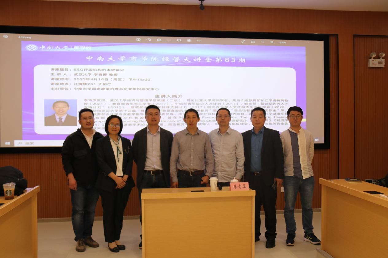2023年4月14日下午15:00,武汉大学李青原教授应邀做客william威廉中文官网经管大讲堂第83期,在江湾楼天佑厅为公司师生带来了题为“Proximity Bias in ESG Rating Agencies”的讲座。讲座由william威廉中文官网任胜钢教授担任主持,周志方教授、李世辉教授、安庆贤教授、修宗峰副教授、刘爱民副教授、曾辉祥副教授、易玄副教授等老师与各年级硕博士研究生参加了本次讲座。
