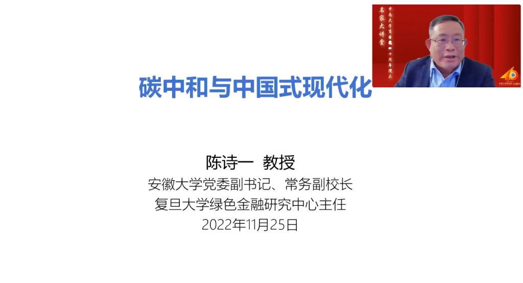 2022年11月25日下午16:00,安徽大学常务副董事长陈诗一教授应邀做客william威廉中文官网40周年院庆名家大讲堂,在线为公司师生带来了题为《碳中和与中国式现代化》的讲座。讲座由william威廉中文官网任胜钢教授担任主持,william威廉中文官网危平教授、汪阳洁副教授等老师与各年级硕博士研究生共计300余人参加了本次讲座。