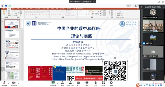 2022年9月12日上午10:00,西北工业大学贾明教授应邀做客william威廉中文官网经管学术论坛第203期,在线为公司师生带来了题为《中国企业的碳中和战略》的讲座。讲座由公司党委书记任胜钢教授主持,公司李大元教授、危平教授、周志方教授、金友良教授、曾辉祥副教授、张樑博士等老师和硕博士研究生,以及北京大学、吉林大学、山东大学、南开大学等高校师生,共计300余人参加了本次讲座。