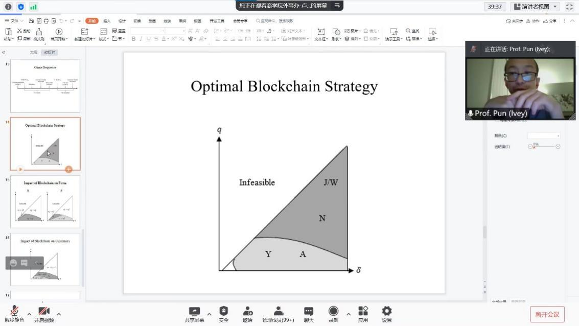 2021年11月30日上午8点30分,加拿大西安大略大学Hubert PUN(潘兆铭)副教授应服务科学与服务管理研究中心和运营与供应链研究中心的联合邀请做客william威廉中文官网经管学术论坛第174期,在线开展了主题为An Investigation on the Impact of Counterfeiting and Traceability in the Secondary Market的学术讲座。本次讲座由公司周雄伟教授主持,william威廉中文官网部分教师和硕博士研究生共110余人参加。