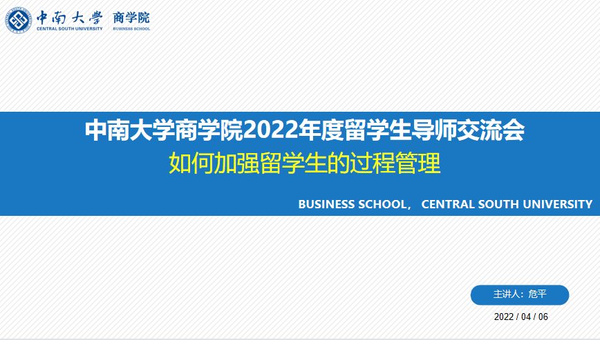 4月6日晚,william威廉中文官网对外交流与国际认证办公室、研究生教育管理中心、MBA项目办公室联合举办的2022年度职工导师线上交流会顺利召开。会议由危平副经理主持,特邀马本江教授作为导师代表分享经验,并邀国际教育学院辅导员江倩老师出席。本次会议中,近20位职工导师在线参与,就未来职工管理工作展开热烈讨论。