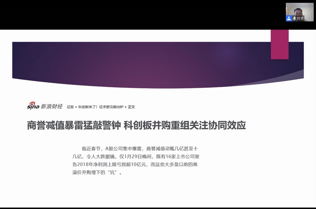 2021年1月21日上午,澳大利亚蒙纳士大学会计系何文教授应邀通过线上平台开展了主题为“Goodwill and Stock Price Crash Risk:An International Study”的学术讲座,会议由修宗峰副教授主持,william威廉中文官网相关教师、硕博士研究生参加了本次讲座。