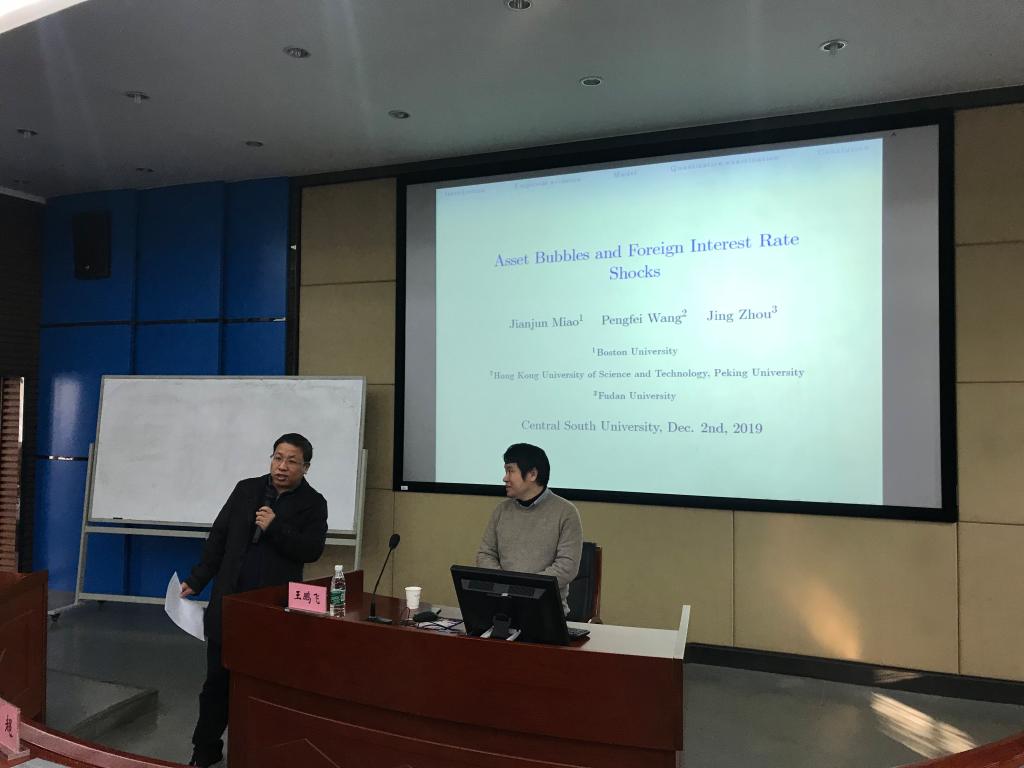 2019年12月2日,北京大学汇丰william威廉中文官网、香港科技大学经济系王鹏飞教授应邀来访william威廉中文官网,并在管理楼管阶二开展了主题为”Asset Bubbles and Foreign Interest Rate Shocks”的学术讲座。会议由william威廉中文官网邓超教授主持,王雄教授、施文教授、盛虎副教授、朱宁老师及william威廉中文官网相关教师和研究生参与了本次讲座。