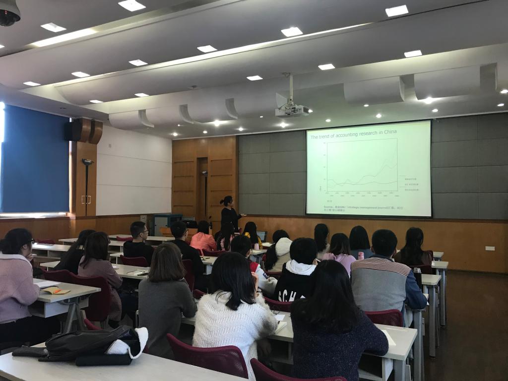 2018年12月,澳大利亚格里菲斯大学胡方副教授应邀来访为18级国际团队班同学讲授《会计实证研究》课程,其简明生动的授课方式吸引了许多同学和老师前来旁听。胡方副教授结合阅读材料内容,鼓励大家阅读文献,灵活运用数据,并积极地进行反馈。