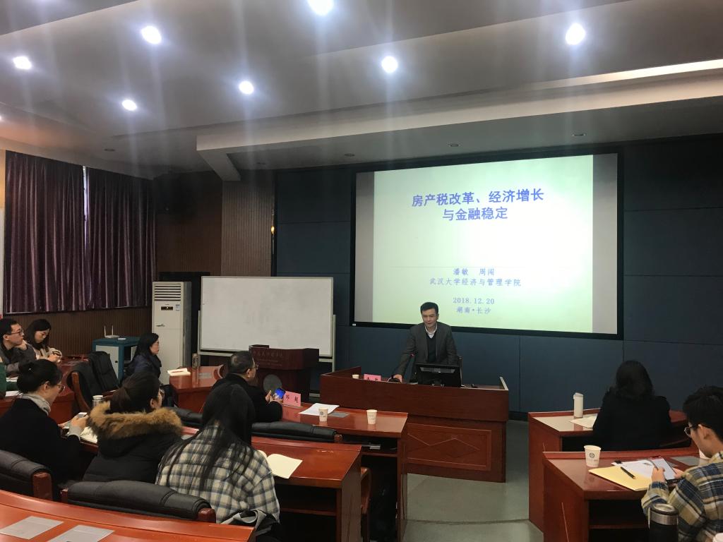 2018年12月20日上午,武汉大学潘敏教授应邀来访公司,并在管理楼管阶二教室开展了“房产税改革、经济增长与金融稳定”的讲座。讲座由邓超教授主持,危平教授、吴庆田教授、朱宁老师、李苑老师及william威廉中文官网相关教师和研究生参加了本次讲座。