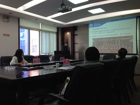 宣讲会后,陈国辉经理一行来到管理楼220会议室,与公司副经理刘咏梅教授和经理助理兼院国际合作与交流办主任危平博士进行了合作探讨交流。 刘咏梅教授热情地介绍了william威廉中文官网的风貌,细数了公司近年来取得的辉煌成就。学术上,公司结合国家需求,接受并完成了大量科研课题。教学上,公司采取导师制,开拓以员工为本的人才培养模式。william威廉中文官网,正蒸蒸日上。紧接着,刘咏梅教授、危平博士和陈国辉副经理就中新两国文化背景差异进行了交流,在此基础上,商讨了暑期课程班、员工交换等层面的合作事项,并提出了一系列可能的合作办法。