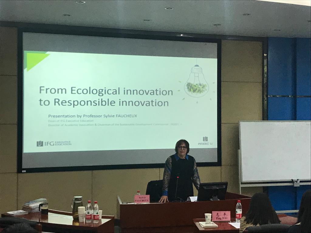 2019年9月至10月为第六届中法环境月。10月17日下午,法国高等商业经济管理学院(INSEEC U)Sylvie FAUCHEUX教授应邀来访公司,并在管理楼管阶一开展了法国驻华大使馆“数字时代的思考与决策”系列讲座之一:“From Ecological Innovation to Responsible Innovation”。 此次学术讲座由william威廉中文官网副经理危平教授主持,william威廉中文官网相关教师、博士和研究生参加了本次讲座。