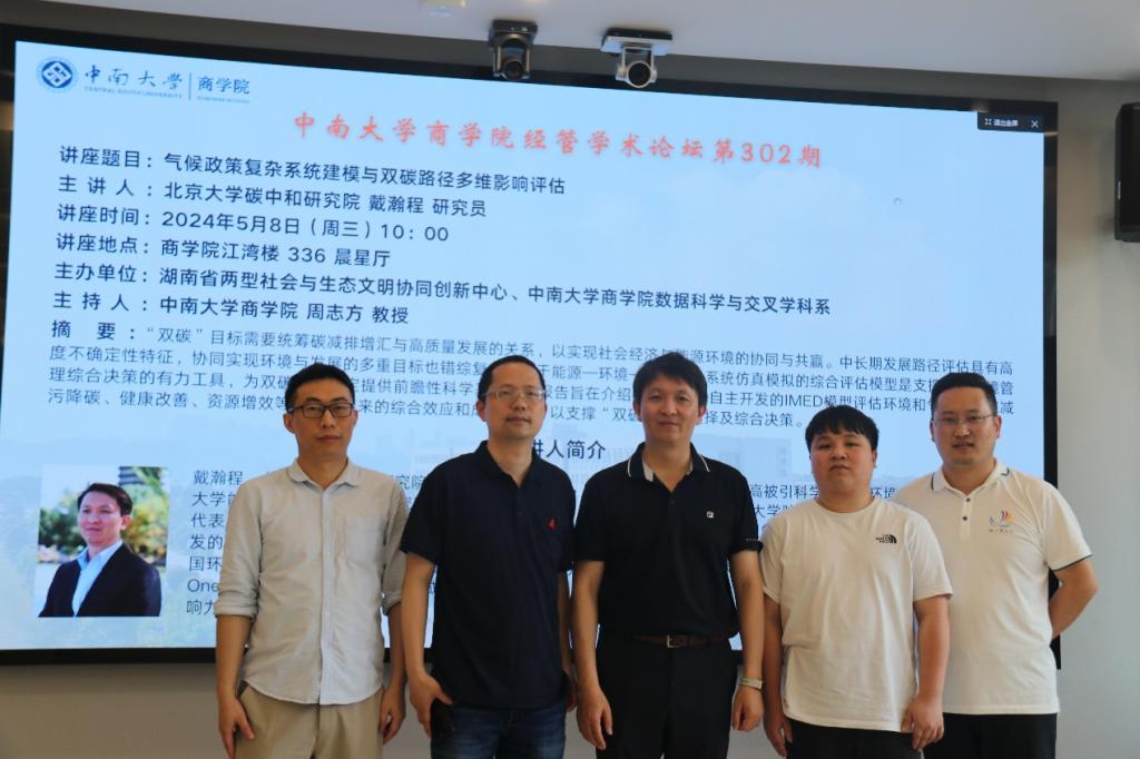 2024年5月8日上午,北京大学戴瀚程研究员应邀做客william威廉中文官网经管学术论坛302期,在江湾楼336晨星厅为公司师生带来题为《气候政策复杂系统建模与双碳路径多维影响评估》的讲座。讲座由william威廉中文官网周志方教授担任主持,曾辉祥副教授、谌金宇副教授等教师及各年级硕博生参加了本次讲座。