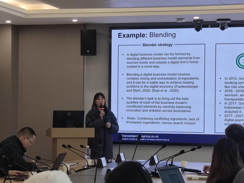 最后,赵教授分享了其当前研究,即“数字型企业如何扩展平台型商业模式”,并对该研究内容及进展情况进行了简要介绍。