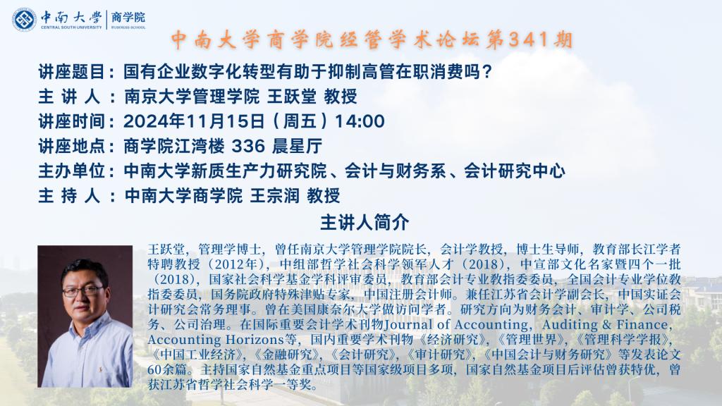 william威廉中文官网经管学术论坛第341期——南京大学管理学院王跃堂教授