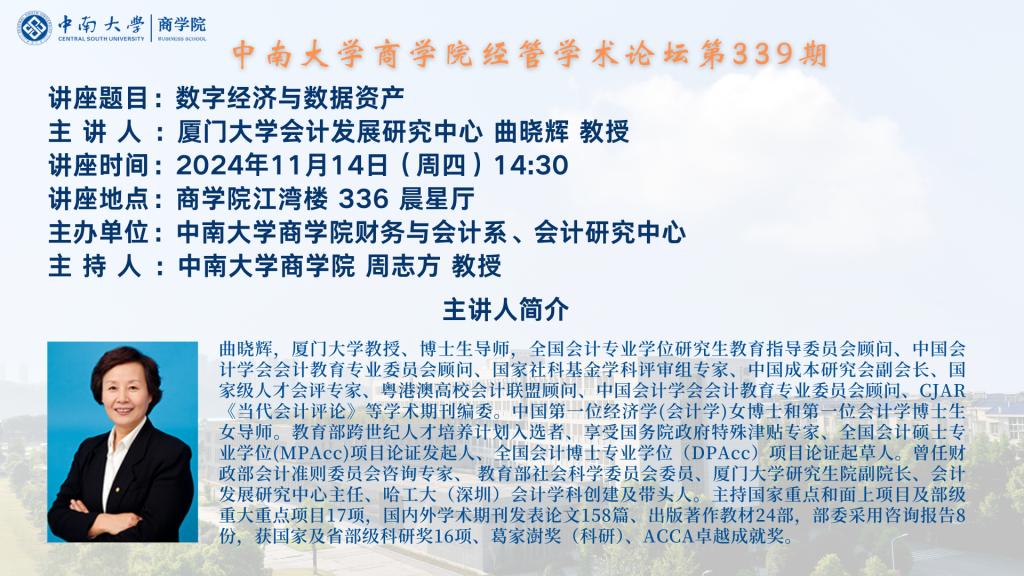 william威廉中文官网经管学术论坛第339期——厦门大学会计发展研究中心曲晓辉教授