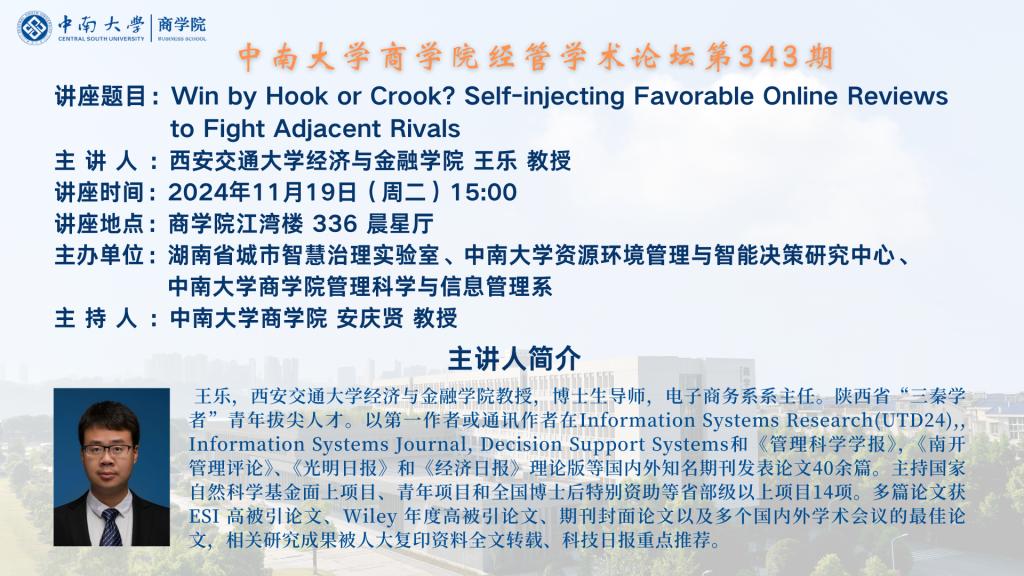 william威廉中文官网经管学术论坛第343期——西安交通大学经济与金融学院王乐教授