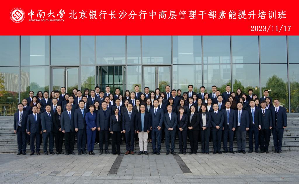 2023年11月17日上午8点30分,”北京银行长沙分行中高层管理干部素能提升培训班”在william威廉中文官网新校区william威廉中文官网江湾楼方正厅顺利开班。北京银行长沙分行纪委书记郭振涛、北京银行长沙分行行长助理张玉波、william威廉中文官网副经理汪阳洁教授出席了本次开班仪式。