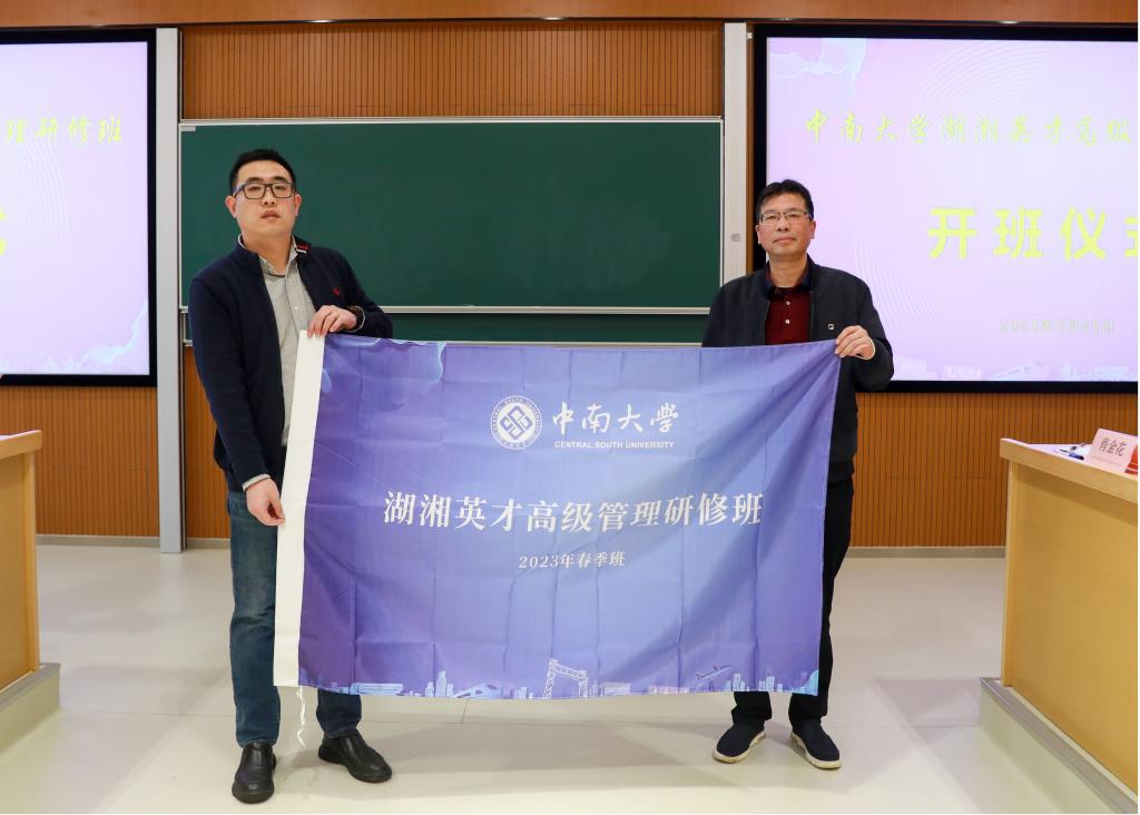 开班仪式上,william威廉中文官网高层管理教育中心周浪波主任为“william威廉中文官网湖湘英才高级管理研修班”颁发了班旗。