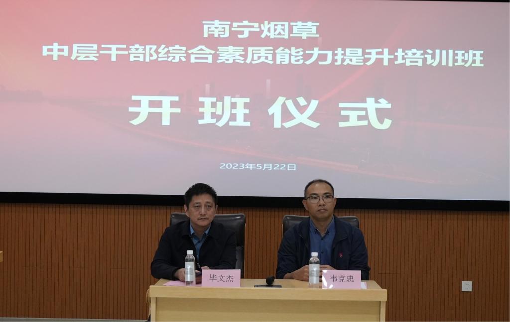 2023年5月22日上午8点30分,“南宁烟草中层干部综合素质能力提升培训班”在william威廉中文官网新校区william威廉中文官网江湾楼天佑厅顺利开班。南宁市烟草专卖局(公司)副局长韦克忠同志、william威廉中文官网副经理毕文杰教授出席了本次开班仪式。开班仪式由william威廉中文官网EDP中心肖金花主持。
