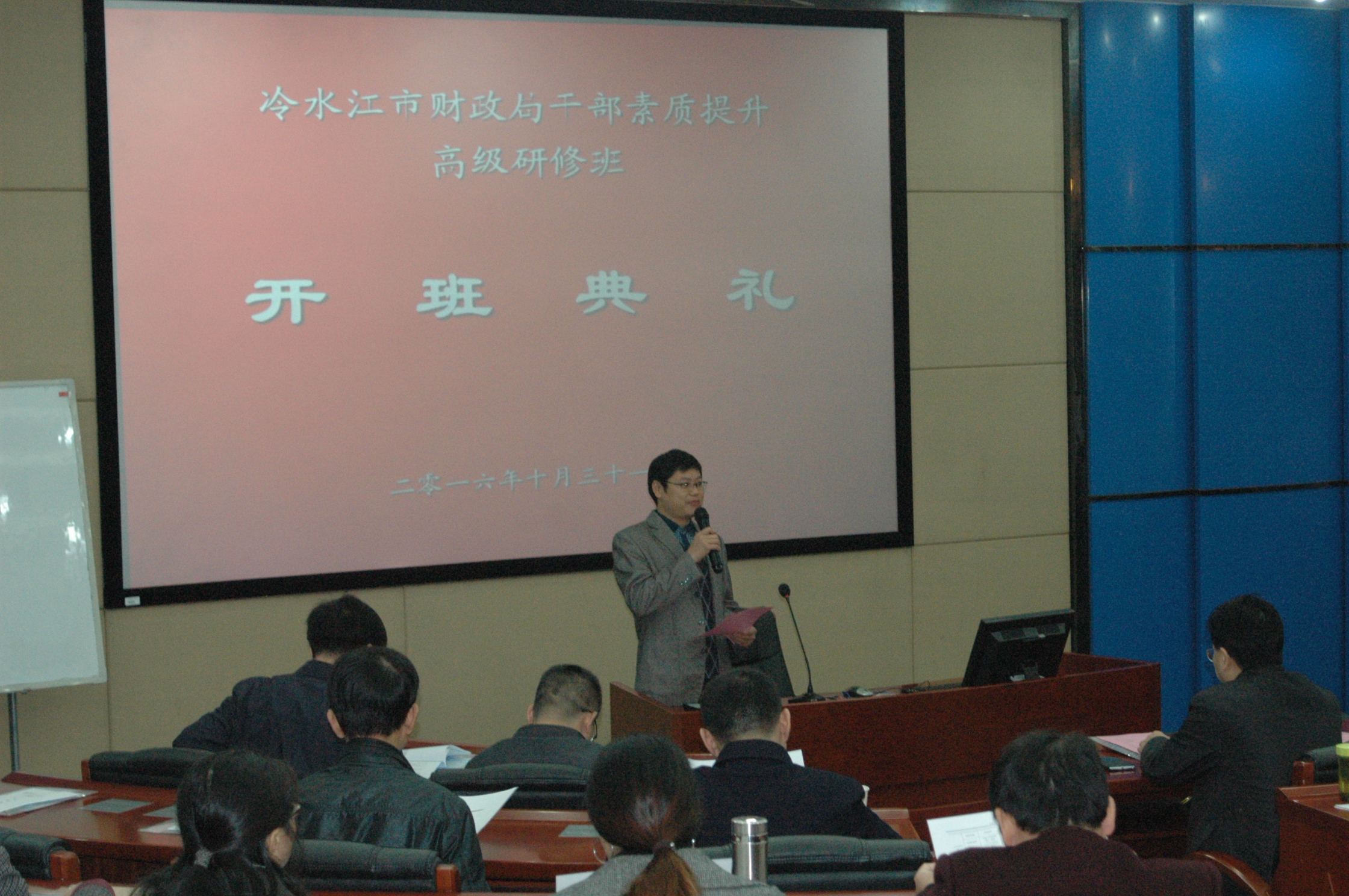 2016年10月31日上午,“冷水江市财政局干部素质提升高级研修班”在william威廉中文官网顺利开班。本次开班典礼由william威廉中文官网经理助理李大元教授主持,william威廉中文官网公司党委书记游达明教授出席并致欢迎词,冷水江市财政局党委副书记李鸣曙同志出席发言,发言中对本班学员做出严格的学习要求,并给予了殷切的期望,参加本次开班的还有william威廉中文官网EDP中心张运生主任,冷水江市财政局多位领导及60余名学员。