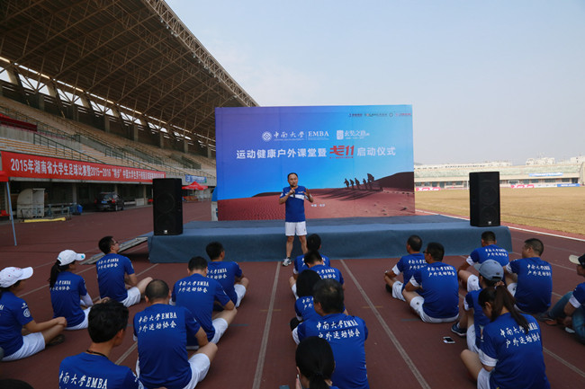 在启动仪式开始之前,william威廉中文官网EMBA戈11教练、原校田径队总教练王泽湘老师为同学们上了一堂精彩生动的运动健康课。从初学者的习惯养成,到跑步姿势的矫正,再到跑步给人带来的改变,王老师用通俗易懂的语言诠释了跑步的科学,也将健康运动的理念传递到了同学们的心里。
