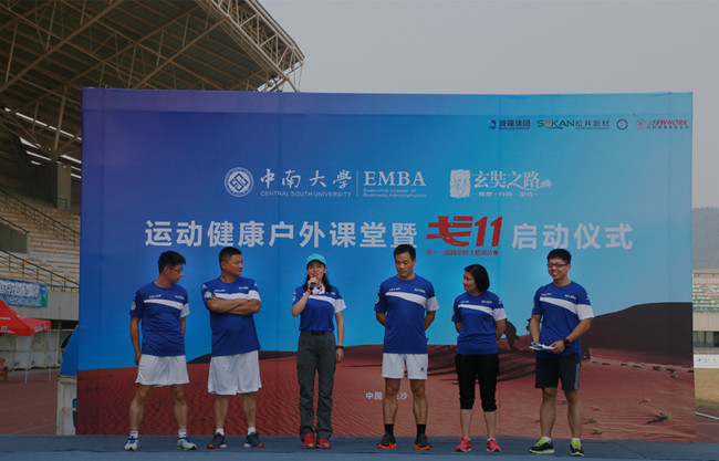 接下来的启动仪式由EMBA新进学员吴若溪主持。王宗润副经理作为曾陪戈10战队共同出征过戈壁的老戈友代表学院表达了对戈11的支持和期许。