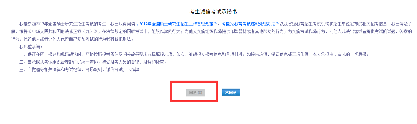 ⑤、查看考生承诺书,点击同意。