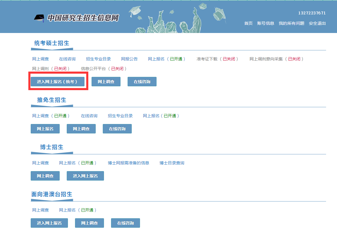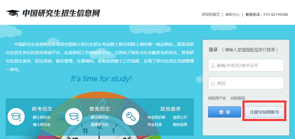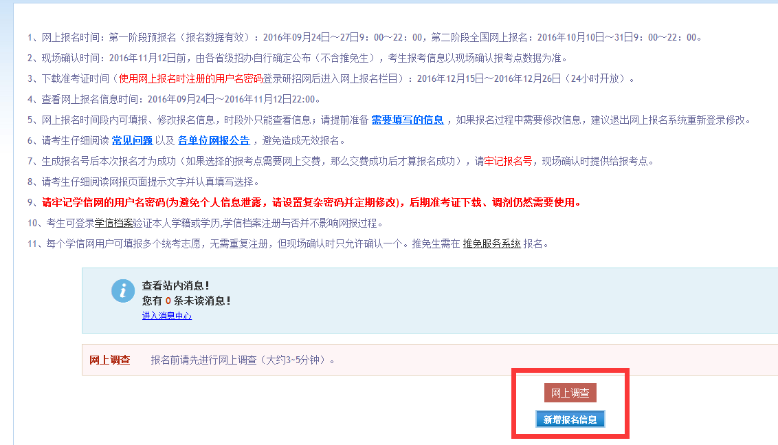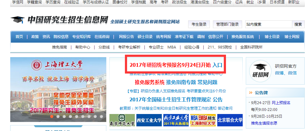 ①、登入中国研究生招生信息网(http://yz.chsi.com.cn/)进入报考入口。