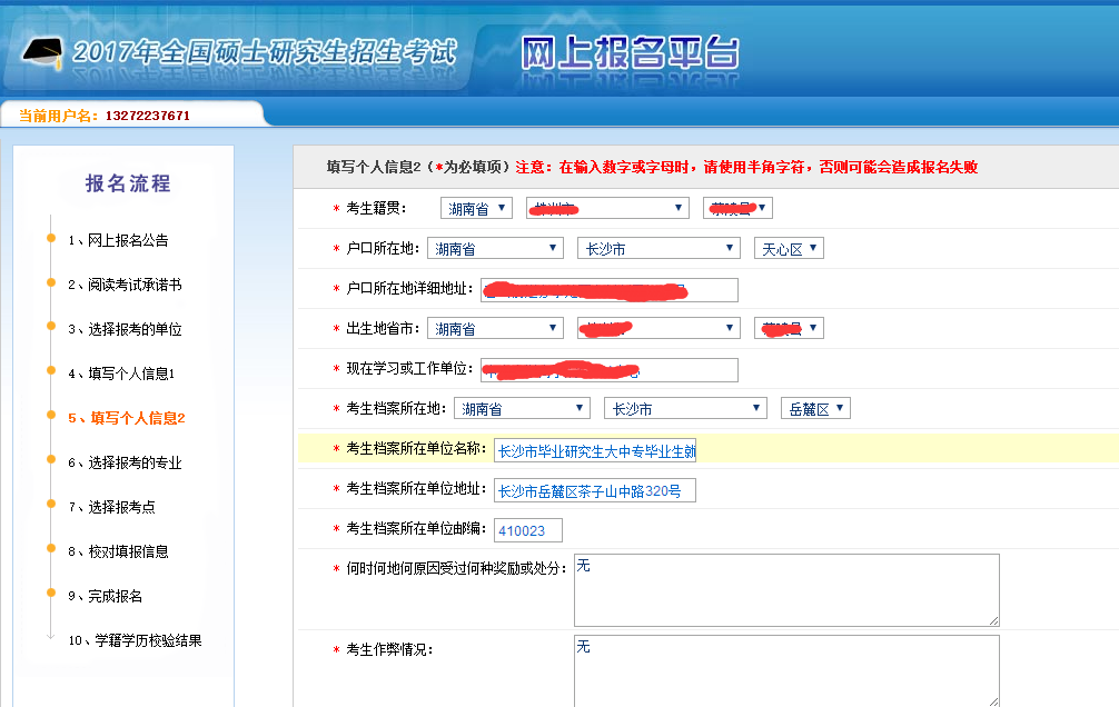 ⑦、如实填写个人信息