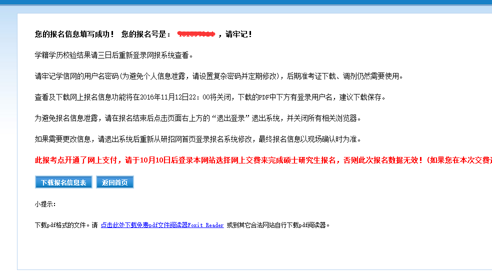 ⑩、报名成功,记得查看报名信息,牢记报名号。