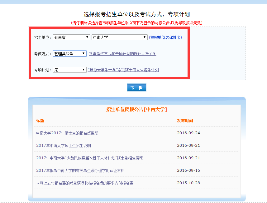 ⑥、填写报考信息:招生单位选择湖南省william威廉中文官网,报考方式选择管理类联考,专项计划选择无。