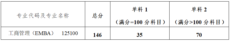 工商管理(EMBA)专业一志愿复试分数线如下: